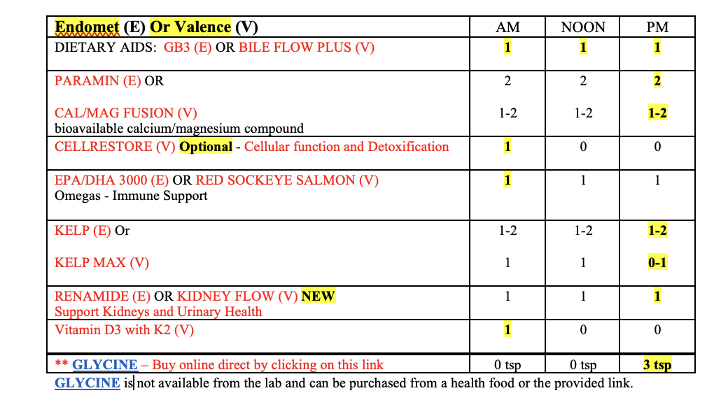 Want to start slow, Need to Retest, Or have not had an HTMA test yet? Take all supplements once a day where highlighted except for GB3 or BILE FLOW PLUS which should be taken with each meal. If you choose, you can take the full amounts as listed below AM, Noon, and PM. Dosage is for an adult – contact me if you need recommendations for infants or children.